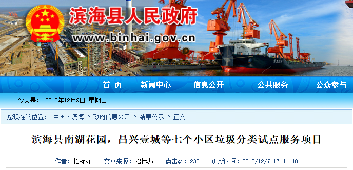 原標(biāo)題:金沙田中標(biāo)106.6萬江蘇濱海縣七個小區(qū)垃圾分類項(xiàng)目