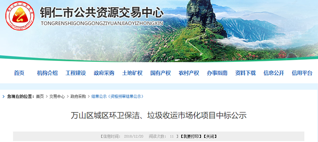 原標(biāo)題:3105萬/年,家寶園林中標(biāo)貴州萬山區(qū)城區(qū)環(huán)衛(wèi)保潔、垃圾收運項目