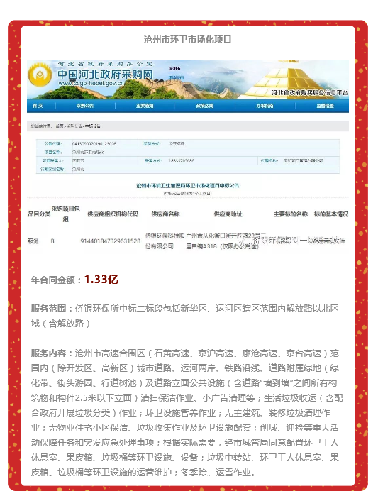 新年伊始,僑銀環(huán)保首戰(zhàn)告捷,憑借先進(jìn)的管理理念、良好的市場信譽(yù)、精湛的技術(shù)水平與合理的項(xiàng)目報價,成功中標(biāo)滄州市環(huán)境衛(wèi)生管理局環(huán)衛(wèi)市場化項(xiàng)目(二標(biāo)段),實(shí)現(xiàn)新年“開門紅”。