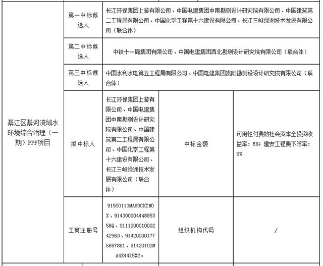 近日,長江環(huán)保集團上游有限公司、中國電建集團中南勘測設(shè)計研究院有限公司、中國建筑第二工程局有限公司、中國化學工程第十六建設(shè)有限公司、長江三峽綠洲技術(shù)發(fā)展有限公司聯(lián)合體中標重慶市綦江區(qū)綦河流域水環(huán)境綜合治理(一期)PPP項目。投標報價為可用性付費的社會資本全投資收益率6%,建安工程費下浮率5%。