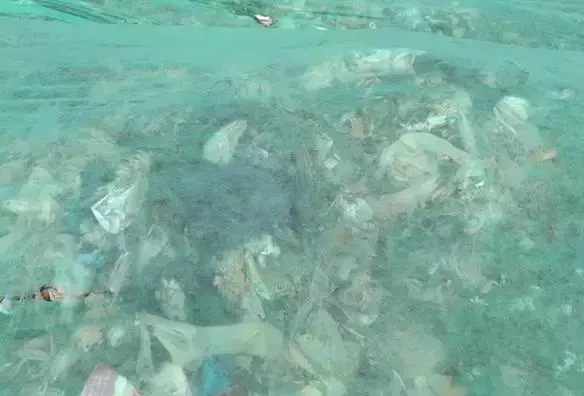 圖5:三善堂臨時(shí)垃圾堆場(chǎng)綠化膜下的垃圾清晰可見(jiàn)。