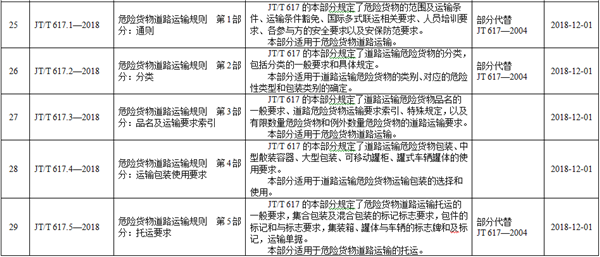 該標(biāo)準(zhǔn)將于2018年12月1日起實(shí)施。標(biāo)準(zhǔn)包括7個(gè)部分、600多頁(yè)、40多萬(wàn)字,內(nèi)容完整、系統(tǒng)性強(qiáng),對(duì)危險(xiǎn)貨物分類(lèi)、包裝、托運(yùn)、裝卸、運(yùn)輸?shù)拳h(huán)節(jié)的操作要求都進(jìn)行了明確規(guī)定。