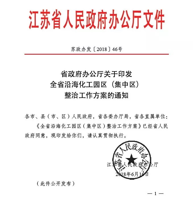 日前,江蘇省辦公廳印發(fā)了《全省沿?;@區(qū)(集中區(qū))整治工作方案的通知》(蘇政辦發(fā)【2018】46號,下稱46號文),文件要求對沿海地區(qū)南通、連云港、鹽城三市轄區(qū)內(nèi)所有化工園區(qū)及園區(qū)內(nèi)所有化工生產(chǎn)企業(yè)進(jìn)行整治。另有消息稱,江蘇省環(huán)保廳也下發(fā)了復(fù)產(chǎn)通知,對園區(qū)和企業(yè)環(huán)保達(dá)標(biāo)做出具體規(guī)定。來源:中國化工...